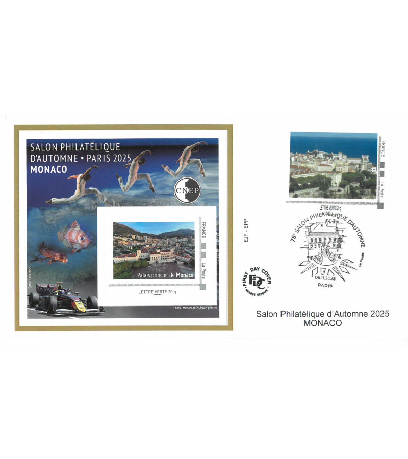 enveloppe avec le bloc collé + timbre personnalisé + oblit ill salon 6/11/2025