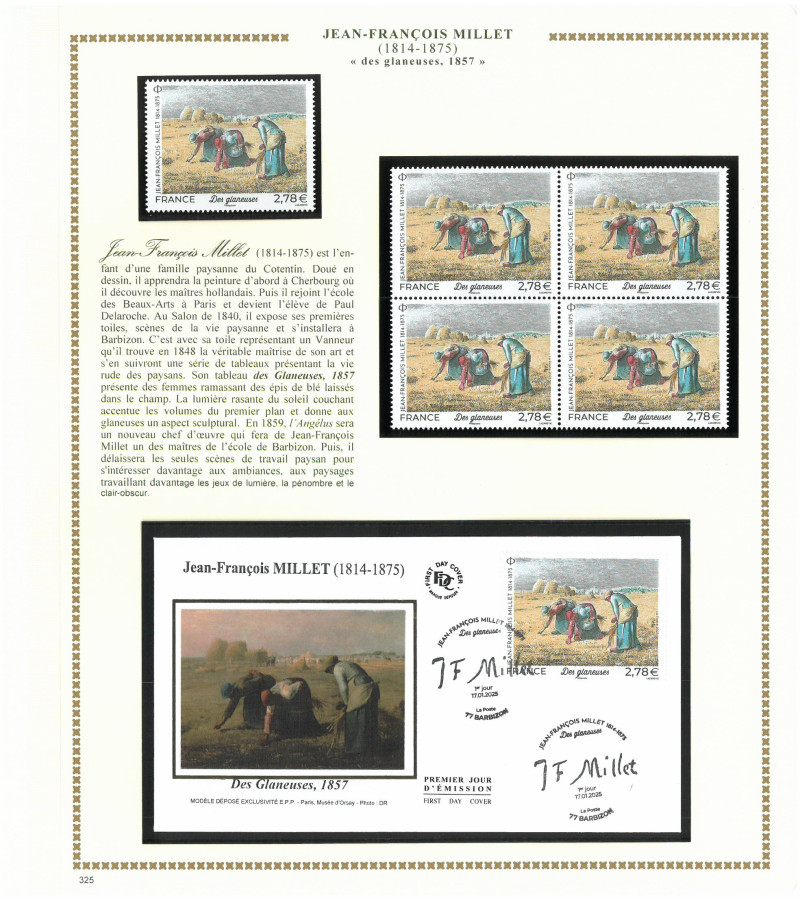 4 feuilles pour Jean-François MILLET - Eric SCHWAB - Jérôme MESNAGER - Jacques-Louis DAVID