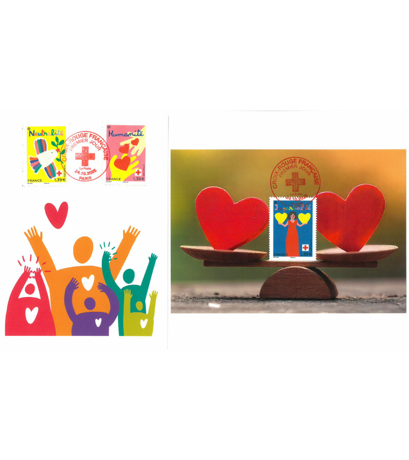 2 cartes postales avec les 3 timbres du bloc, oblit PJ Paris 24/10/2025