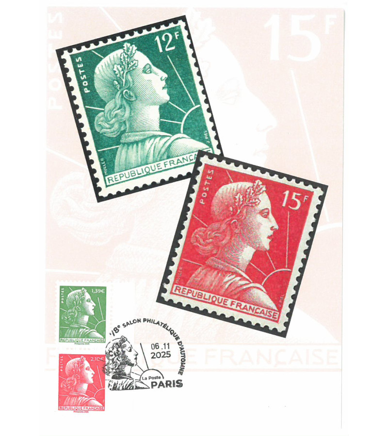 carte postale avec la paire du carnet, oblit ill salon Paris 6/11/2025