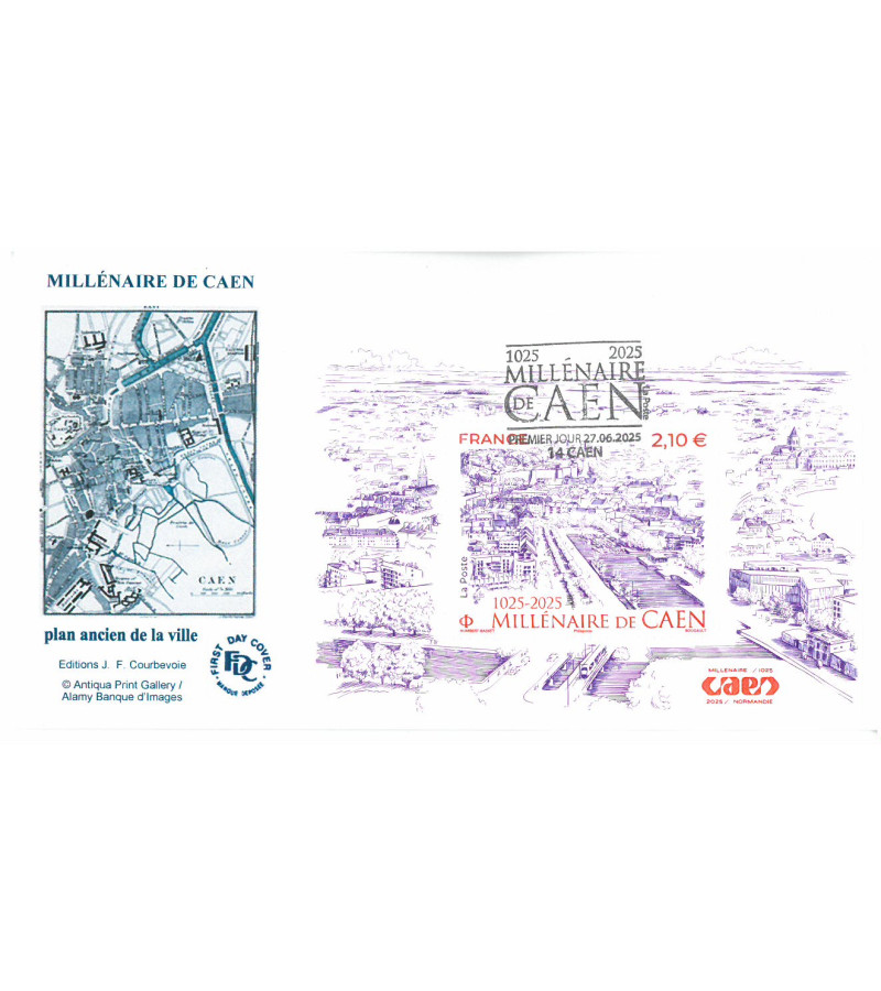 enveloppe bloc gravé, oblit PJ 14 Caen 27/6/2025