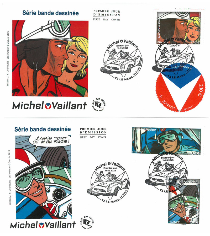 2enveloppes avec les 4 timbres découpés du bloc, oblit PJ 72 Le Mans 19/9/2025
