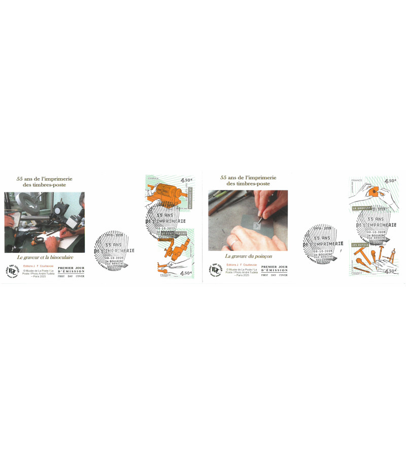 2 enveloppes avec les 4 timbres découpés du bloc, oblit 24 Boulazac 8/10/2025