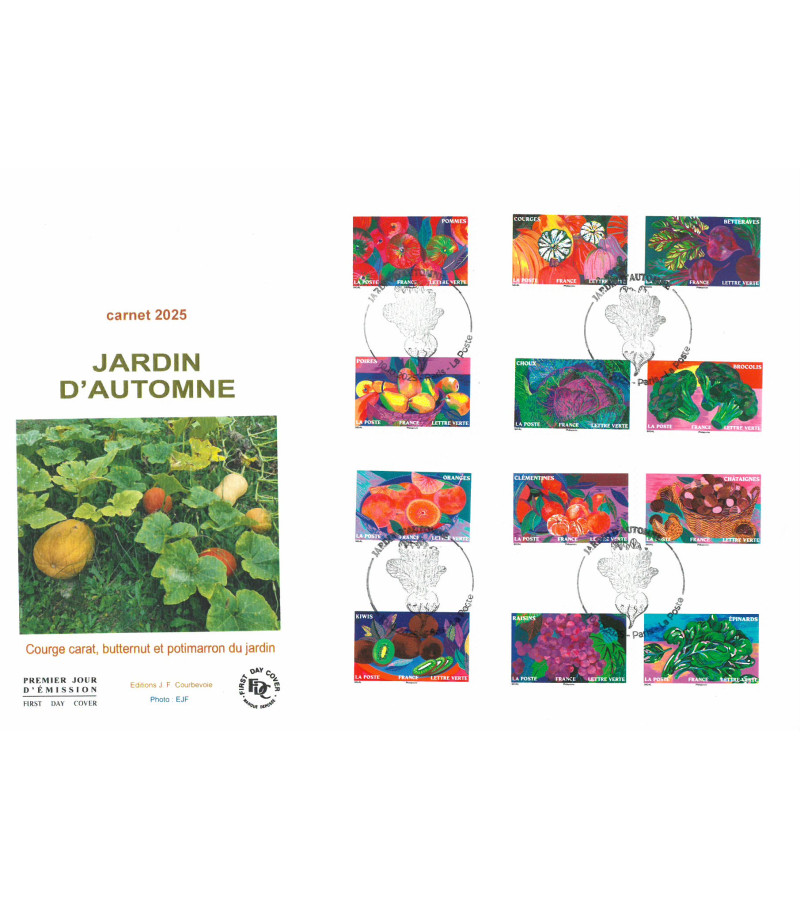 enveloppe grand format avec les 12 TP autocollants de carnet, oblit Paris 10/10/2025