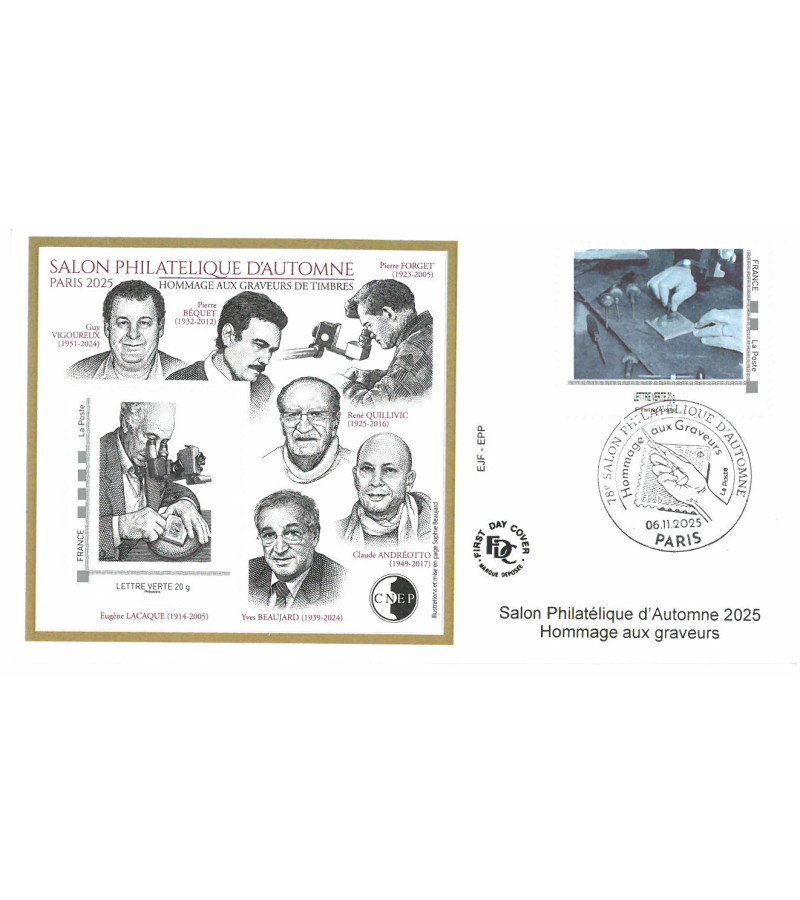enveloppe avec le bloc collé + timbre personnalisé et oblit ill salon 6/11/2025