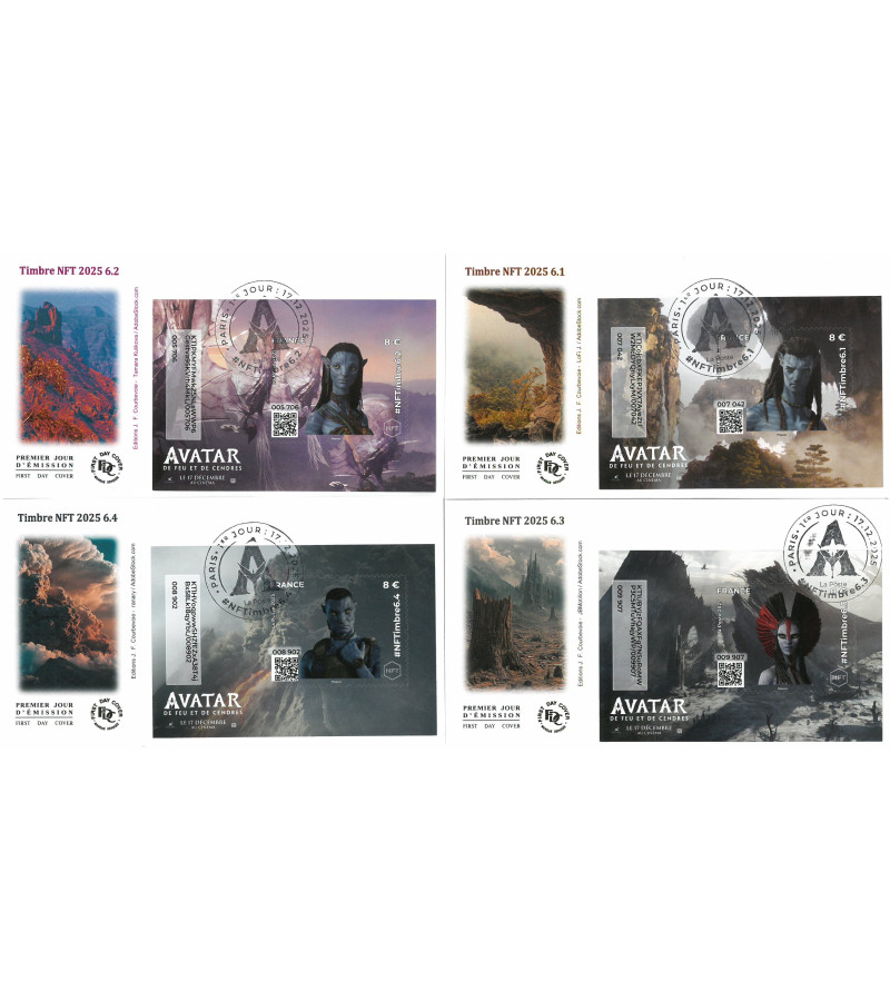4 enveloppes avec les blocs NFT "Avatar" 6.1/6.2/6.3/6.4, oblit PJ Paris 17/12/2025