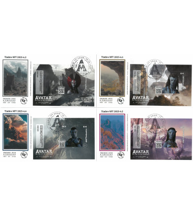 4 enveloppes soie avec les blocs NFT "Avatar" 6.1/6.2/6.3/6.4, oblit PJ Paris 17/12/2025